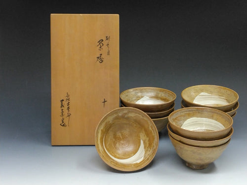 名工 寒川義崇|SAMUKAWA Yoshitaka( 和歌山-大阪, 1951-) 高槻古曾部焼 刷毛目 数茶椀 10客揃 dbsy15594-z