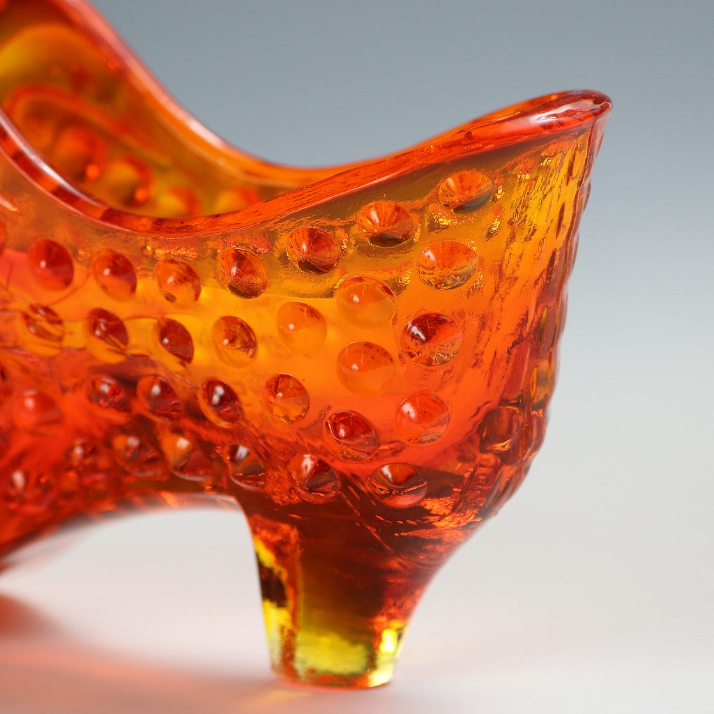 アメリカヴィンテージ FENTON|フェントン(USA,1950-70年代) オレンジボブネイル アートガラス キャットシューズ(a) 女の子を素敵な処へ運ぶラッキーアイテム プレゼント/ラッキーアイテム ミッドセンチュリー・モダンデザイン ガラス細工 硝子工芸 glass art, コレクターズアイテム インテリア・ファッション dbsy15890-9