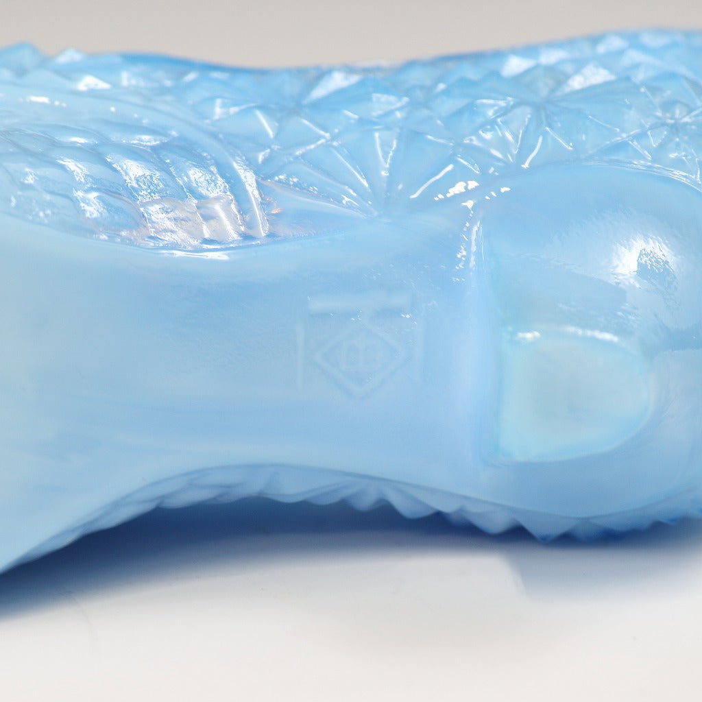 アメリカヴィンテージ BOYD|ボイド社(USA,1978-80年代) デイジーボタン ブルーミルクガラス キャットシューズ 女の子を素敵な処へ運ぶラッキーアイテム プレゼント/ラッキーアイテム ミッドセンチュリー・モダンデザイン ガラス細工 硝子工芸 glass art, コレクターズアイテム インテリア・ファッション dbsy15900-9