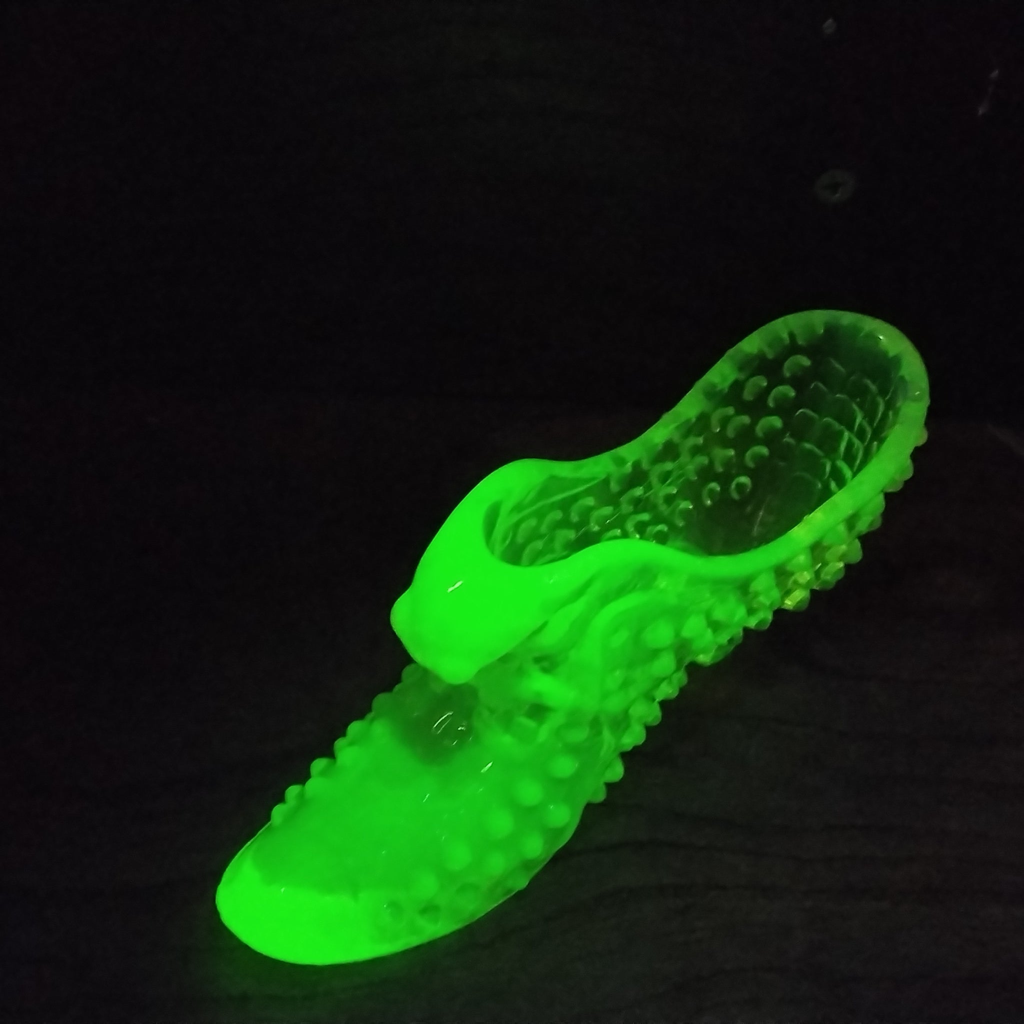 アメリカヴィンテージ FENTON|フェントン(USA,1950-70年代) イエローボブネイル オパールセント ウランガラス キャットシューズ 女の子を素敵な処へ運ぶラッキーアイテム