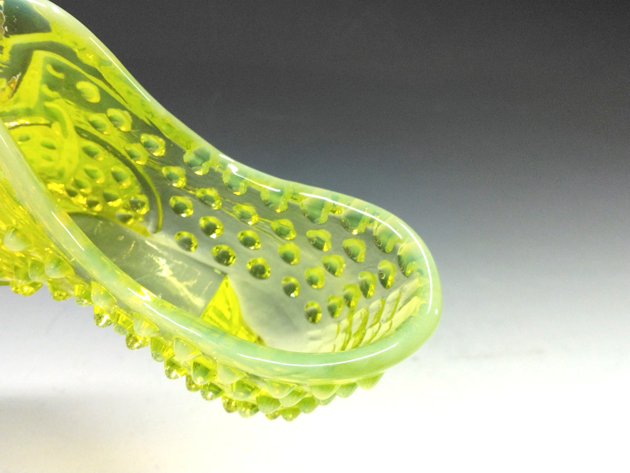 アメリカヴィンテージ FENTON|フェントン(USA,1950-70年代) イエローボブネイル オパールセント ウランガラス キャットシューズ 女の子を素敵な処へ運ぶラッキーアイテム dbsy15895-9