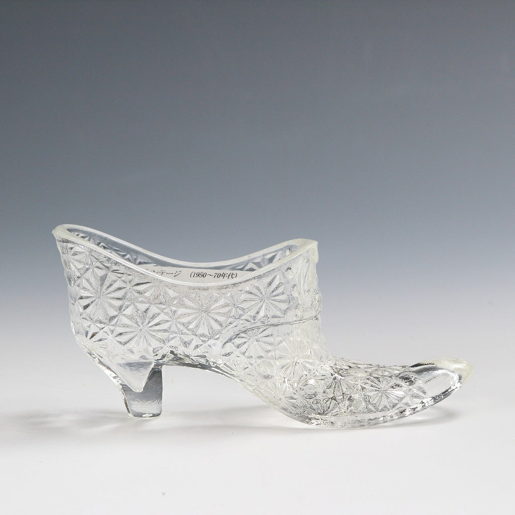 アメリカヴィンテージ FENTON|フェントン(USA,1950-70年代) クリアデイジーボタン アートガラス シューズ 女の子を素敵な処へ運ぶラッキーアイテム プレゼント/ラッキーアイテム ミッドセンチュリー・モダンデザイン ガラス細工 硝子工芸 glass art, コレクターズアイテム インテリア・ファッション dbsy15881-9