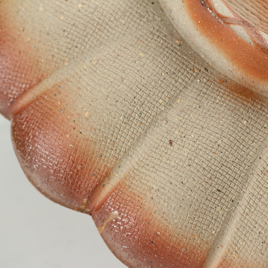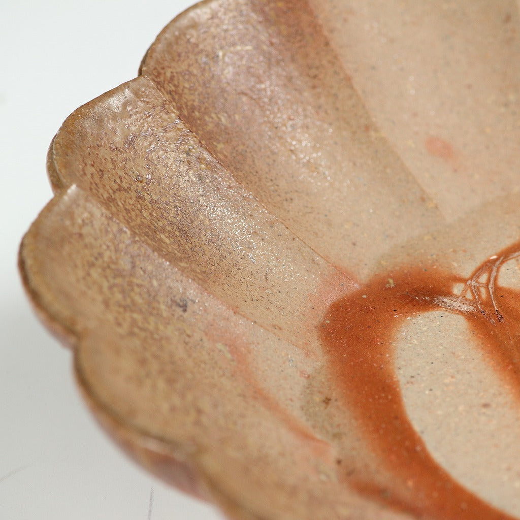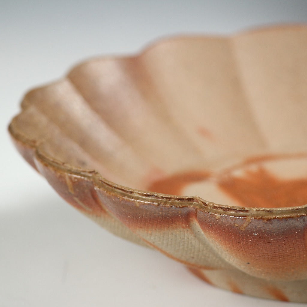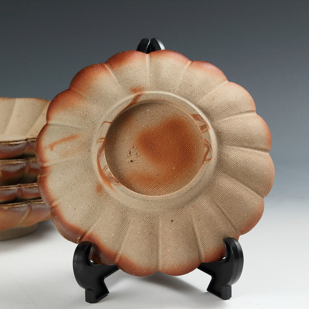 名工 永末隆平|NAGASUE Ryuhei(岡山, 1951- ) 備前 輪花鉢 5客揃 共箱 和食器 日本料理 おしゃれな器 現代工藝作家/伝統工芸工房 デッドストック used 陶芸 陶磁器 古陶磁 porcelain, 高級料亭,レストラン食器美術品/art piece dbsy15971-ミ