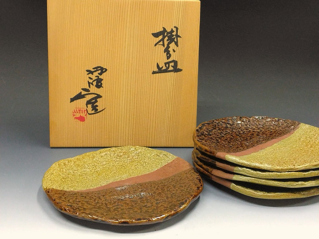 現代工芸人気作家 西端正|NISHIHATA Tadashi(兵庫, 1948- ) 丹波立杭焼 掛分 七寸丸皿 5枚揃 国立工芸館,兵庫陶芸美術館,他 所蔵作家共箱 dbsy15966-ミ