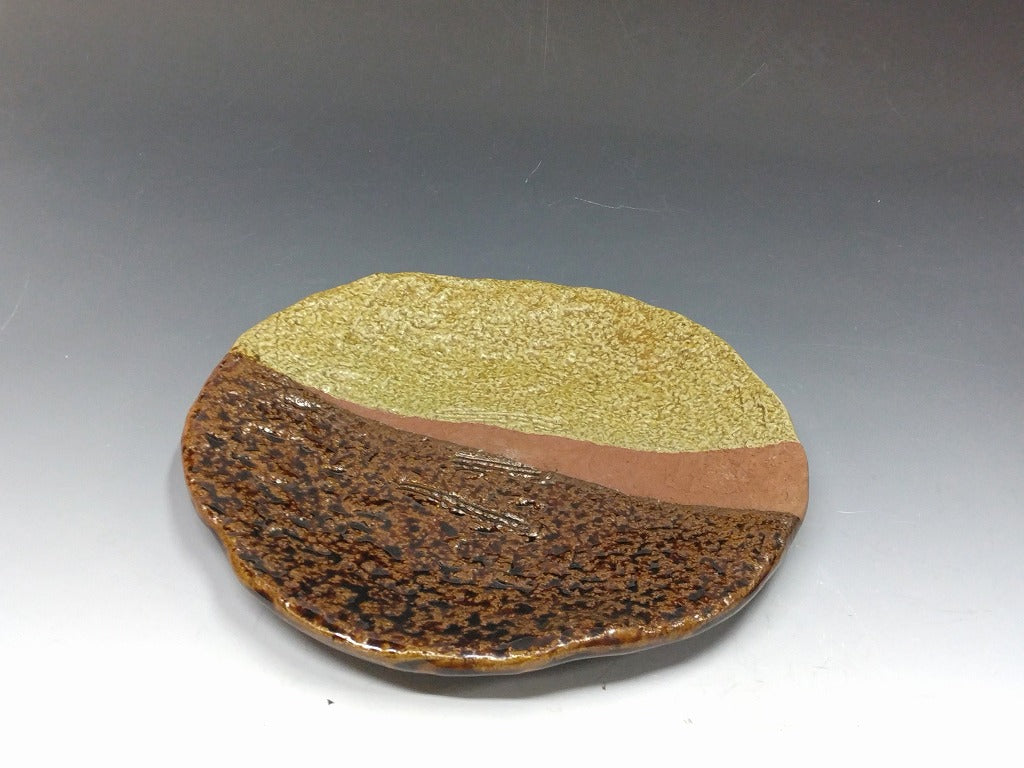 現代工芸人気作家 西端正|NISHIHATA Tadashi(兵庫, 1948- ) 丹波立杭焼 掛分 七寸丸皿 5枚揃 国立工芸館,兵庫陶芸美術館,他 所蔵作家共箱 和食器 日本料理 おしゃれな器 現代工藝作家/伝統工芸工房 デッドストック used 陶芸 陶磁器 古陶磁 porcelain, 高級料亭,レストラン食器美術品/art piece dbsy15966-ミ